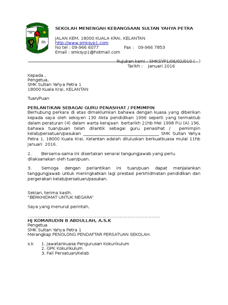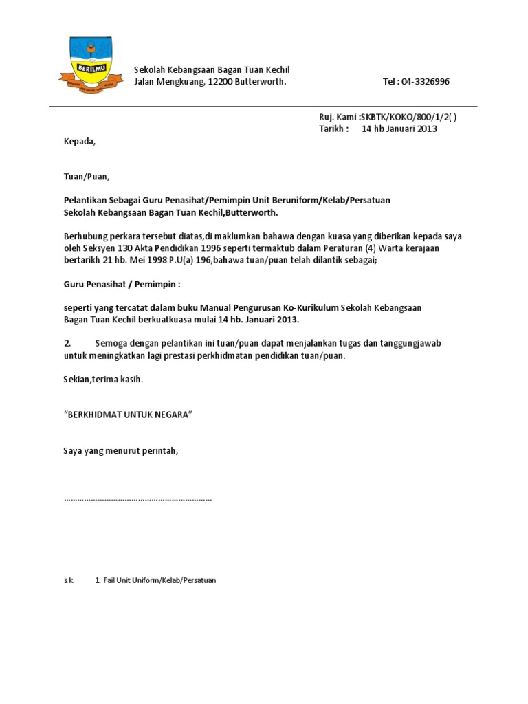 Contoh Surat Perlantikan Guru Penasihat Pdf