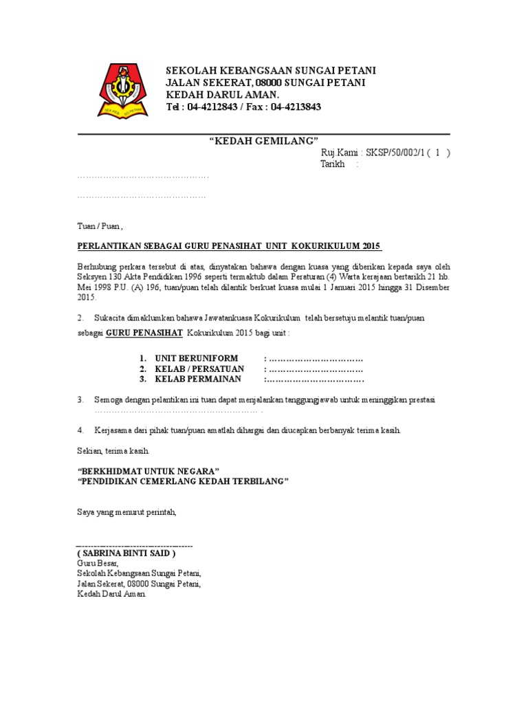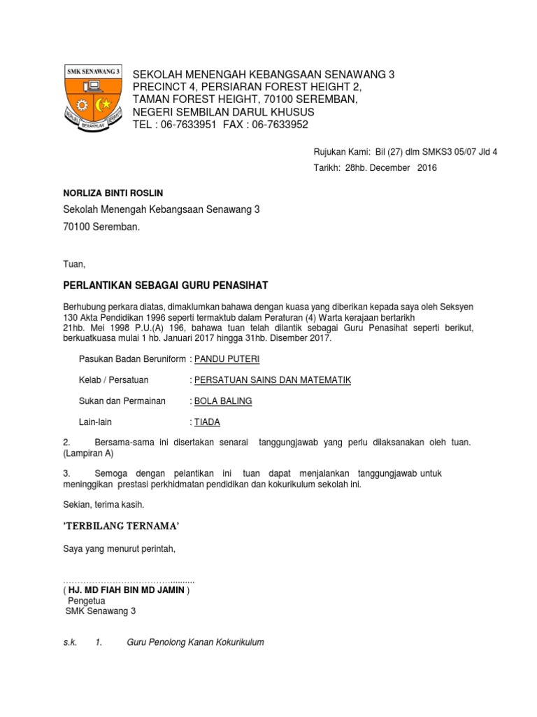 Surat Lantikan Guru Penasihat 2015 Pdf
