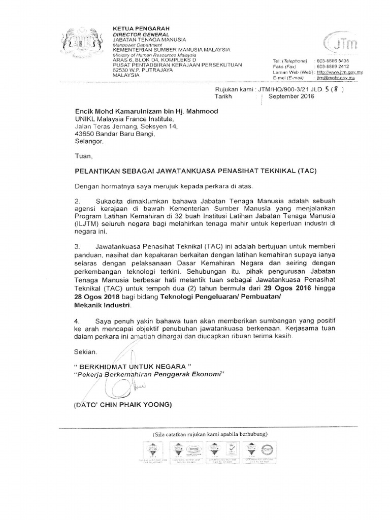 Contoh Surat Lantikan Penasihat